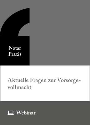 Die Vorsorgevollmacht ist ein zentrales Instrument der privaten und unternehmerischen Vorsorge. Für die notarielle Praxis ergeben sich zahlreiche Einzelprobleme, wie auch die hohe Anzahl gerichtlicher Entscheidungen zu diesem Themenkomplex zeigt. Das Webinar beschäftigt sich mit den aktuellen Entwicklungen in der Rechtsprechung und zeigt die sich in diesem Zusammenhang ergebenden Gestaltungsmöglichkeiten auf. Das Webinarskript enthält auch ein Textmuster.
