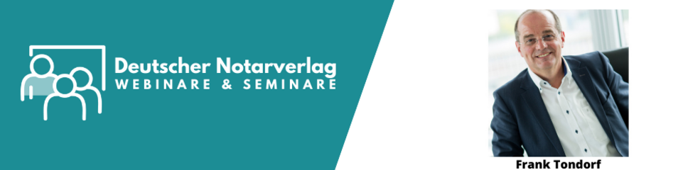 Der Leiter des Webinars, Frank Tondorf, arbeitete als Notariatsleiter und ist heute mit einem Notariats- und GNotKG-Service freiberuflich tätig. Er ist Buchautor und seit über 30 Jahren Dozent, u.a. für das DAI, Akademie Notarkasse A.d.ö.R München und für verschiedene Rechtsanwalts- und Notarkammern.
